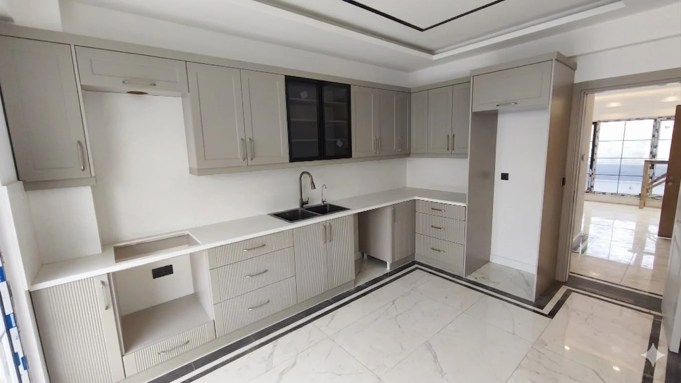 Villamızda 1. sınıf malzemeler kullanılmış olup, mutfakta Belenco marka tezgah, banyolarda ise Vitra marka klozet ve seramik ürünleri tercih edilmiştir. Salon kısmında özel tasarım TV ünitesi ve tavan çıtaları yapılacaktır. Bahçede veranda alanı planlanmış olup, otomatik motorlu bahçe kapısı ile giriş sağlanmaktadır. Bahçe peyzaj çalışmaları devam etmektedir.